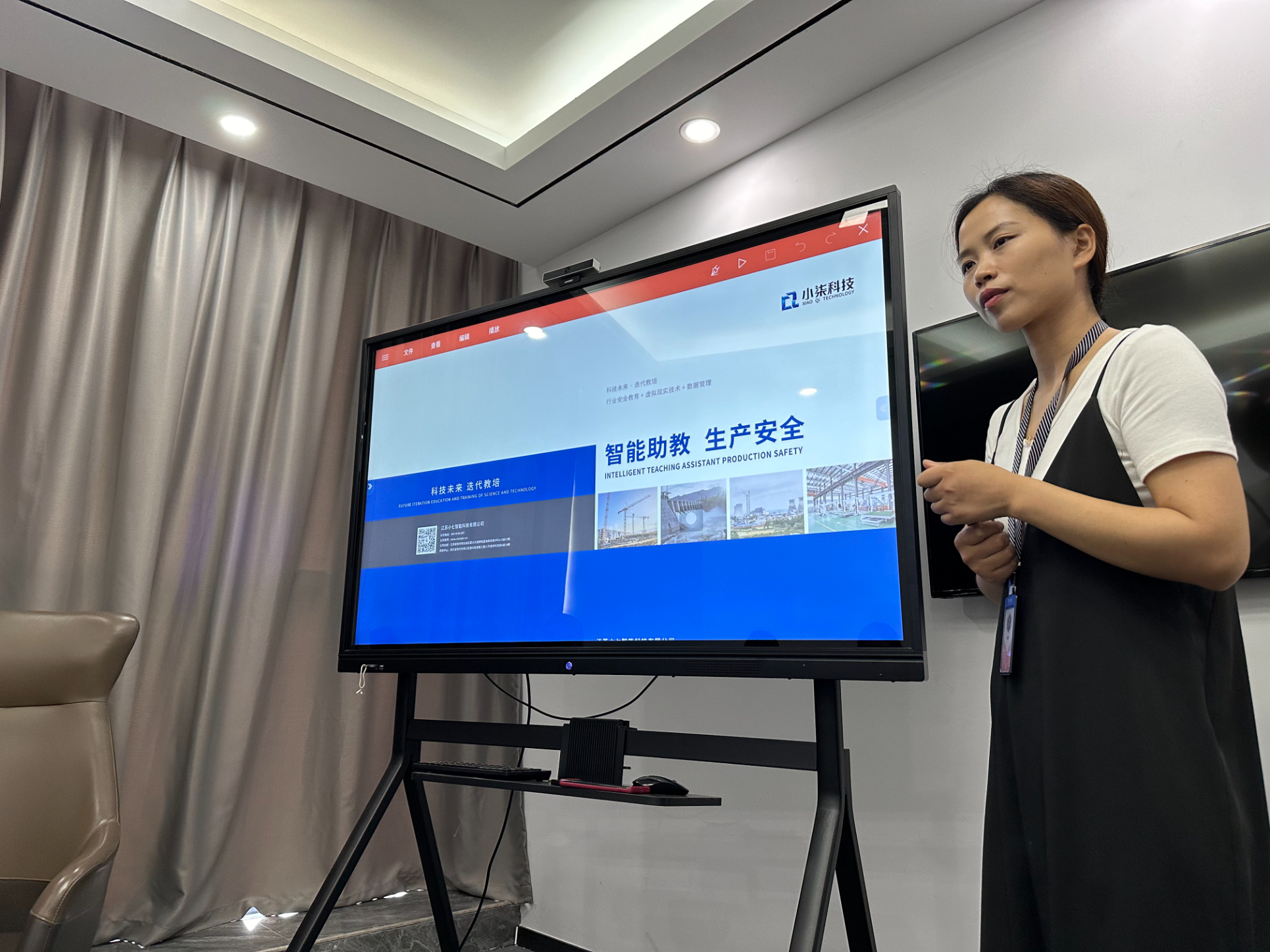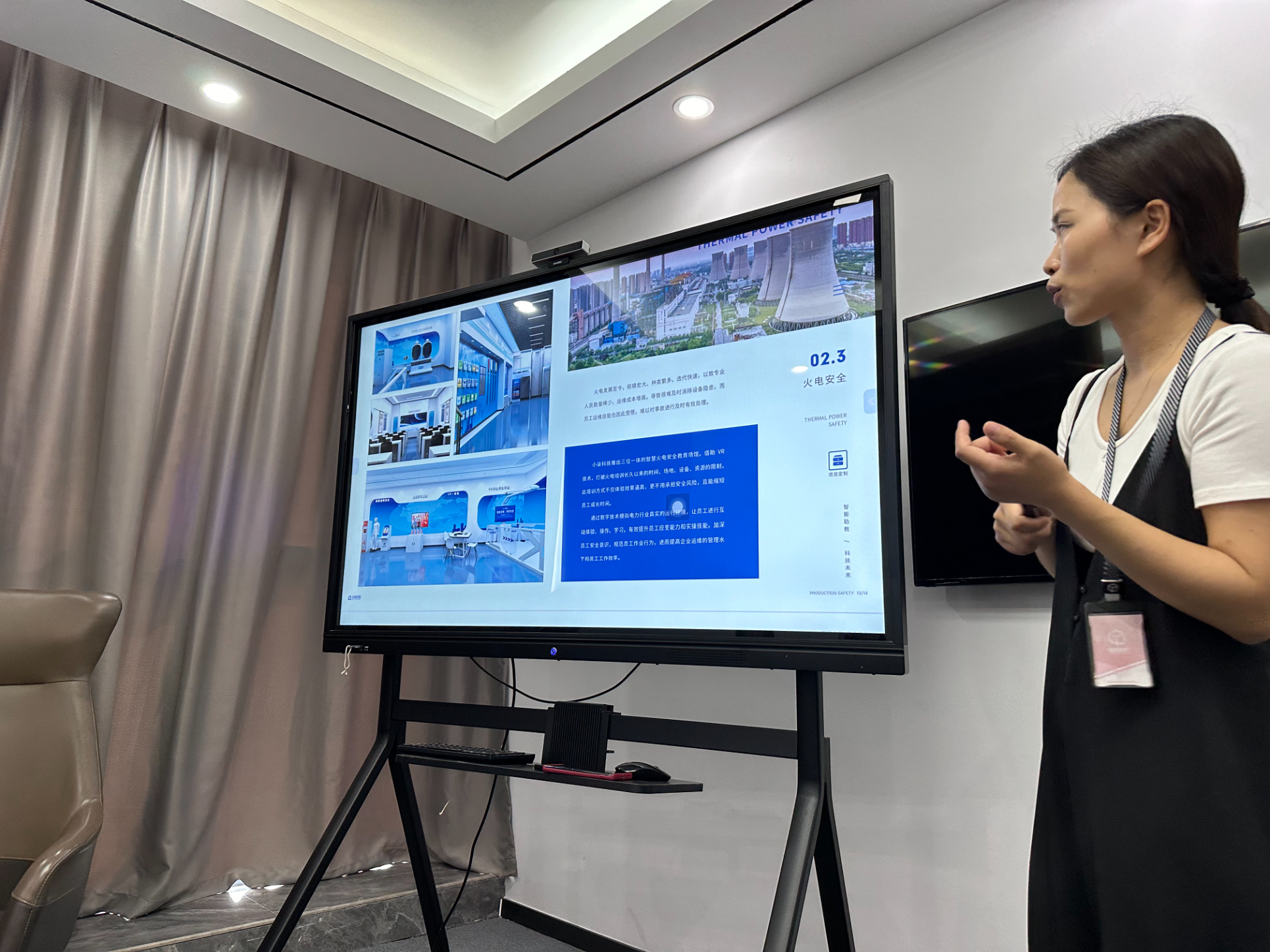 今天的培訓體驗活動已接近尾聲,大家齊聚洽談室,由培訓老師為大家展示公司的智慧安全體驗館經典建設案例,深度剖析行業現狀。雅努思員工認真聽講并提出許多建設性問題,且紛紛表示今天的培訓體驗活動是平時工作過程中不可多得的學習機會,著實令人受益匪淺。標識事業部周鵬經理及標化工地事業部劉慧經理在總結發言中表示此次培訓活動非常有意義,不僅補充了專業知識,又開闊了眼界,增長了見識,收獲滿滿。