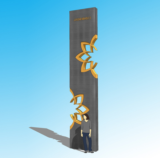 何謂精神堡壘?精神堡壘是一座由不銹鋼或者鐵管圍成的鋼架造型制作出來的大型導視標識牌。它是地產項目的精神載體,是承載著項目文化精神背景的藝術品。