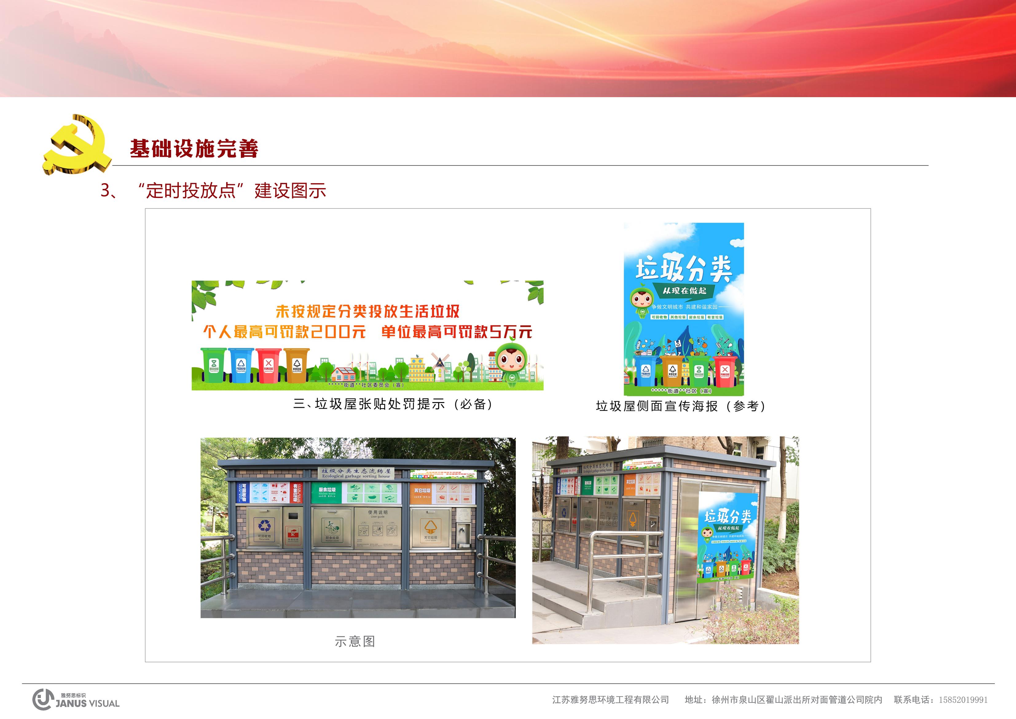垃圾分類不僅是基本民生問題,也是生態文明建設的題中之義。為了加強徐州市鼓樓區生活垃圾分類管理,提高生活垃圾減量化、資源化、無害化處置水平,結合“徐州市生活垃圾分類管理辦法”,雅努思公司為國華天璽小區特設計垃圾分類 整體建設方案。
